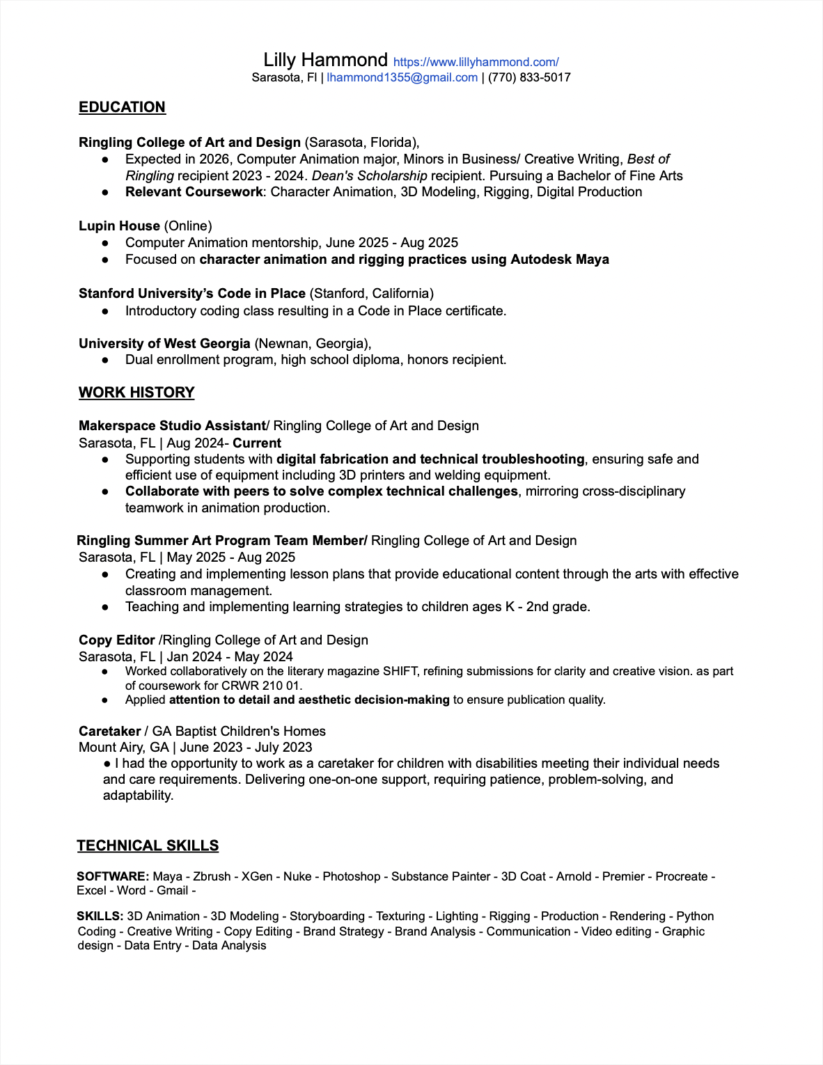 Student at Ringling College of Art and Design
